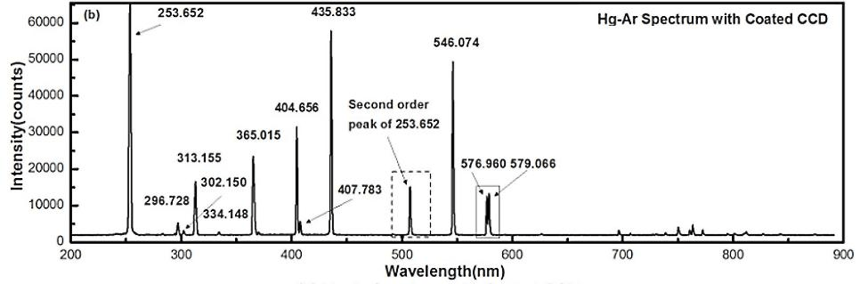 ■ The coated linear array CCD demonstrates enhanced responsivity of approximately 20% in the ultraviolet spectrum, with its measurable wavelength range extended down to 200 nm.